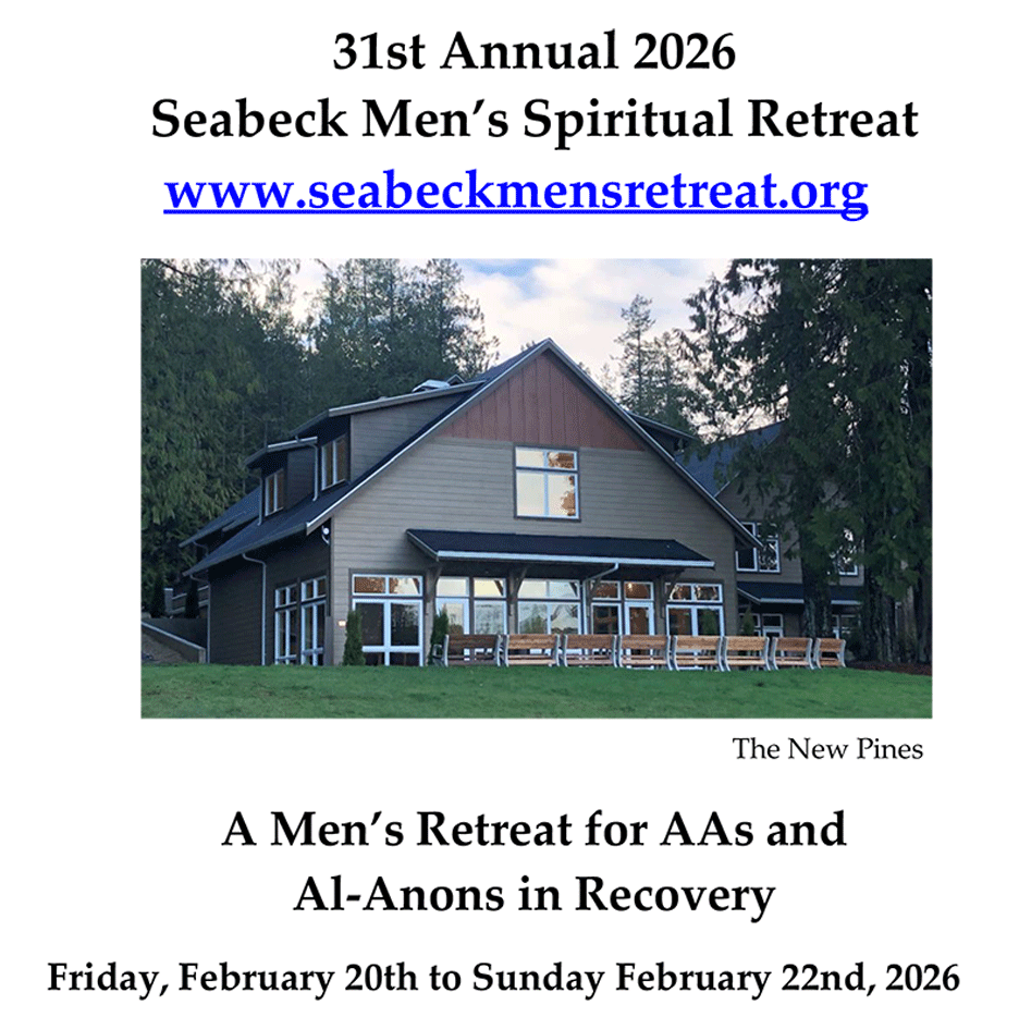 The Seabeck Men’s Spiritual Retreat is an annual gathering limited to 70 men, held on Hood Canal each year since 1996. Attendees included members of Alcoholics Anonymous and Al-Anon.